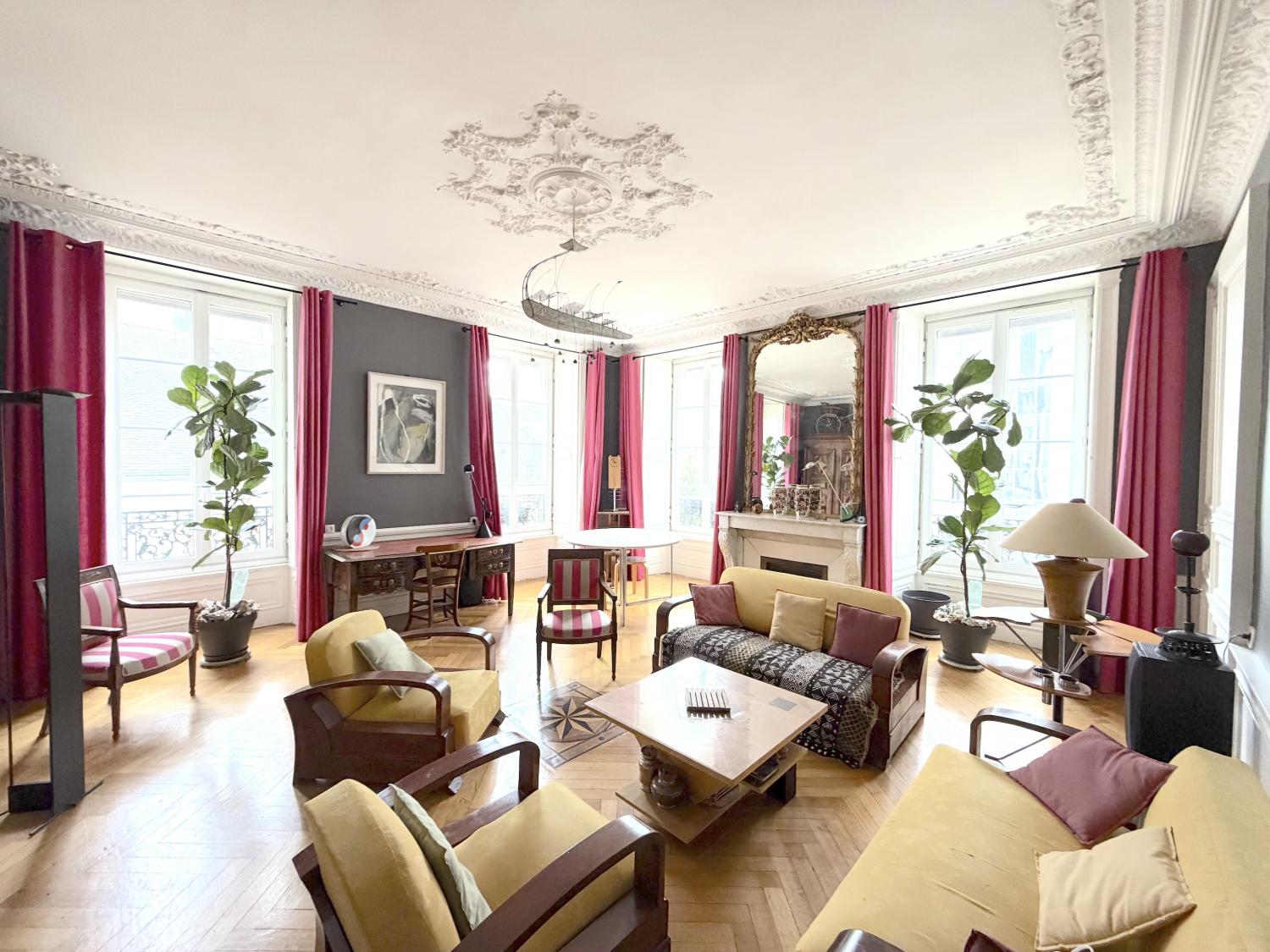 HYPER CENTRE VILLE/MERCOEUR Au 1er étage d'un immeuble ancien bien entretenu, vous trouverez ce très bel appartement de 5 pièces. Charme, volume et très bel luminosité pour cet appartement aux prestations soignées. Il vous offre : Une entrée, un séjour sur magnifique parquet, moulures et cheminée, 3 grandes chambres au calme, une salle de bains et une grande cuisine familiale. Une cave et un grand grenier complètent parfaitement ce bien de qualité.