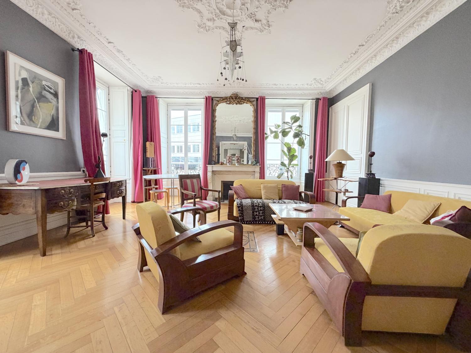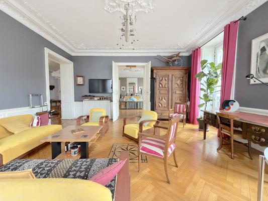 HYPER CENTRE VILLE/MERCOEUR Au 1er étage d'un immeuble ancien bien entretenu, vous trouverez ce très bel appartement de 5 pièces. Charme, volume et très bel luminosité pour cet appartement aux prestations soignées. Il vous offre : Une entrée, un séjour sur magnifique parquet, moulures et cheminée, 3 grandes chambres au calme, une salle de bains et une grande cuisine familiale. Une cave et un grand grenier complètent parfaitement ce bien de qualité.