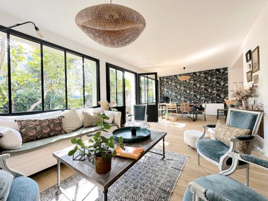 Proche du parc, au sein d'une rue calme et résidentielle, très jolie maison pleine de charme entièrement rénovée avec gout. Elle offre: Une entrée, un beau séjour sur un jardin bien exposé, une buanderie et des WC au RDC.