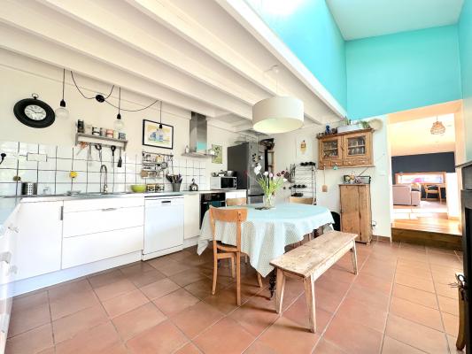 En fond d'impasse privée, jolie maison entièrement rénovée sur un beau terrain clos. Entrée, pièce de vie avec poêle, grande cuisine et arrière cuisine, une chambre, un bureau et une salle de bains de plain-pied.